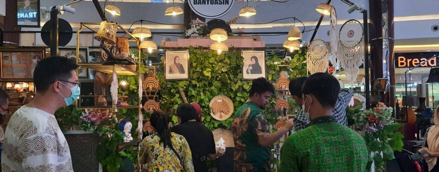 BANYUASIN.KRSumsel.com – Stan Banyuasin bertemakan kebun ramai dikunjungi oleh masyarakat di Pameran Home Decor Sumatera Selatan Tahun 2021 digelar di OPI Mall Jakabaring, Kecamatan Rambutan, Kabupaten Banyuasin, Jum’at (12/11).