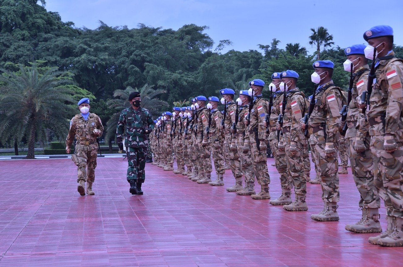 Mengawali sambutannya, Panglima TNI mengapresiasi keberhasilan Satgas karena secara umum, Satgas dinilai telah berhasil mengemban tugas dalam melaksanakan misi pemelihara perdamaian di Afrika Tengah.