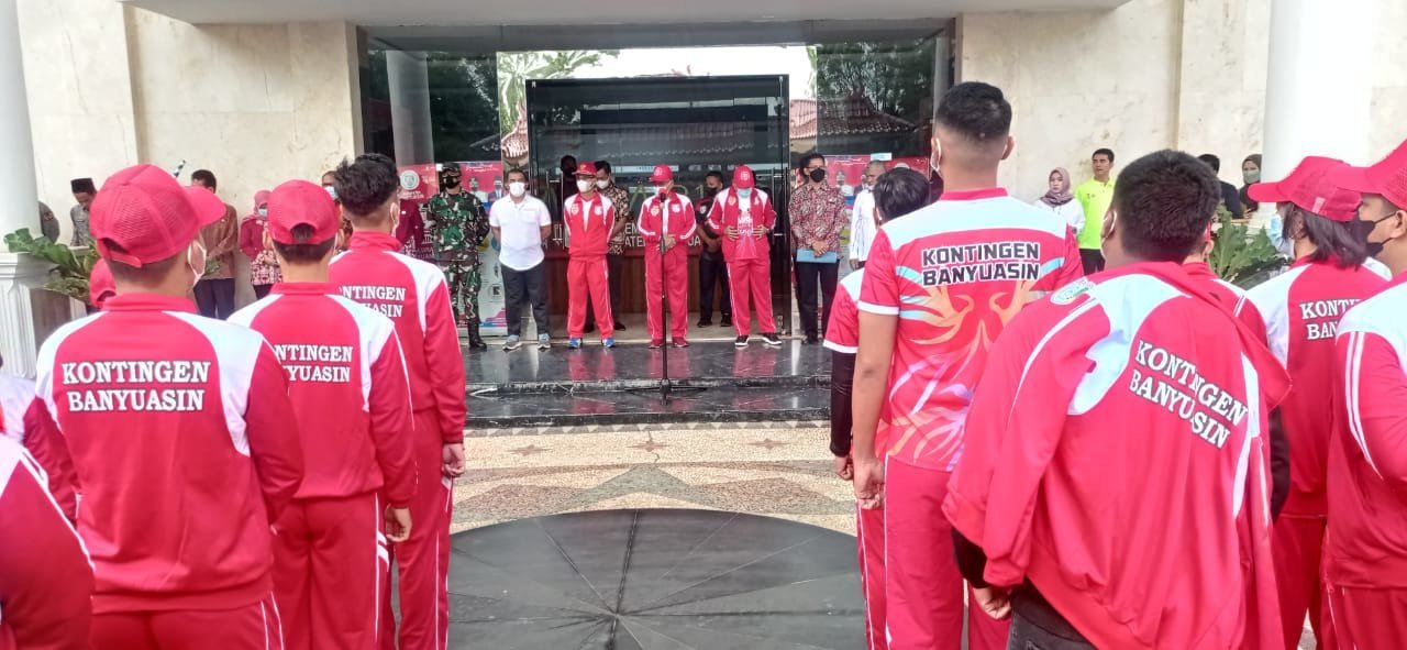 BANYUASIN, KRsumsel.com – Bupati Banyuasin H. Askolani Jasi, SH., MH., Beserta jajaran melepas keberangkatan para atlet yang akan berlaga di Pekan Olahraga Provinsi ke XIII di tiga kabupaten yakni OKU, OKU Timur dan OKU Selatan atau yang lebih dikenal dengan sebutan OKU Raya, di depan halaman kantor Bupati Banyuasin, pada Jum’at (19/11/21).
