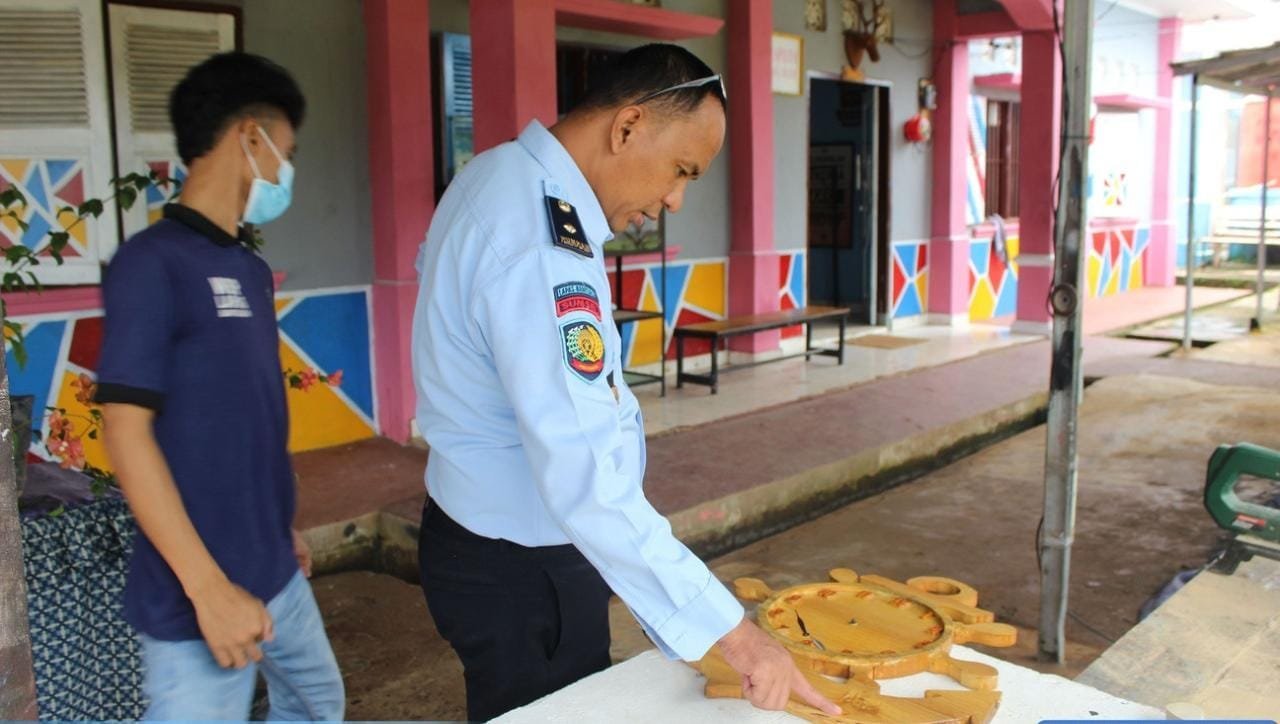 Bengkel kerja ini menjadi wadah bagi warga binaan untuk mengembangkan keterampilannya. Mulai dari kerajinan tangan, mengelas, membuat kain tenun dan lain sebagainya. Untuk saat ini, pada Jumat (19/11/2021), warga binaan dilatih membuat karya dari sepotong kayu. Hasilnya, mereka mampu membuat jam dinding berbentuk jangkar dan kaligrafi.