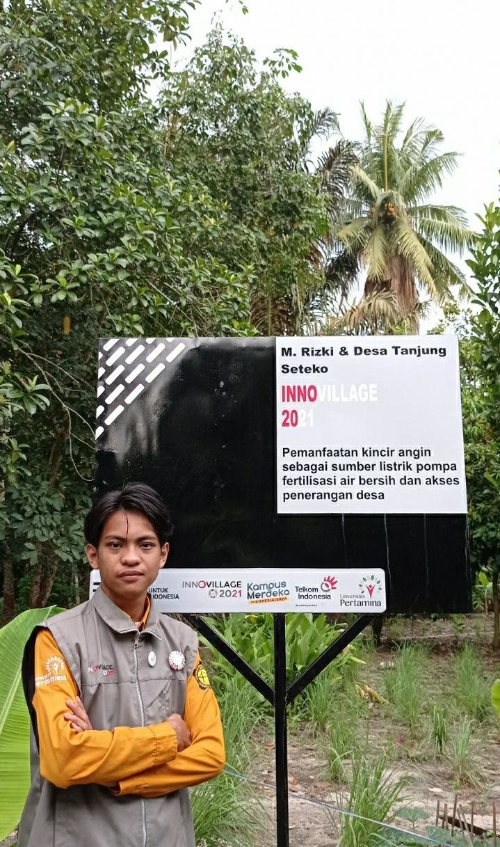 Masih menurut Rizki, Pemanfaatan kincir angin sebagai sumber listrik untuk kebutuhan pompa fertilisasi air bersih dan akses penerangan desa merupakan inovasi digital Suistanable Development Goals (SDGs), inovasi ini memanfaatkan energi angin sebagai penghasil energi utama guna menjadi sumber listrik bagi pompa air dan lampu jalanan, dan desa implementasi yang ditargetkan adalah Desa Tanjung Seteko, Kecamatan Indralaya, Kabupaten Ogan ilir Sumatera selatan.