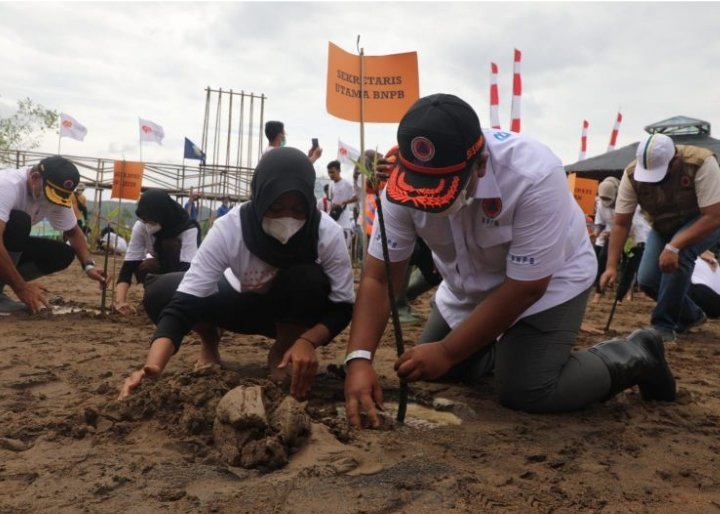 “Salah satu opsi dalam penanggulangan bencana adalah hidup berdampingan dengan bencana. Salah satunya dengan menanam mangrove, sebagai upaya preventif untuk mengurangi dampak tsunami,” kata Kepala Sekretaris BNPB Lilik Kurniawan dalam keterangan tertulis yang diterima. di Jakarta, Senin.