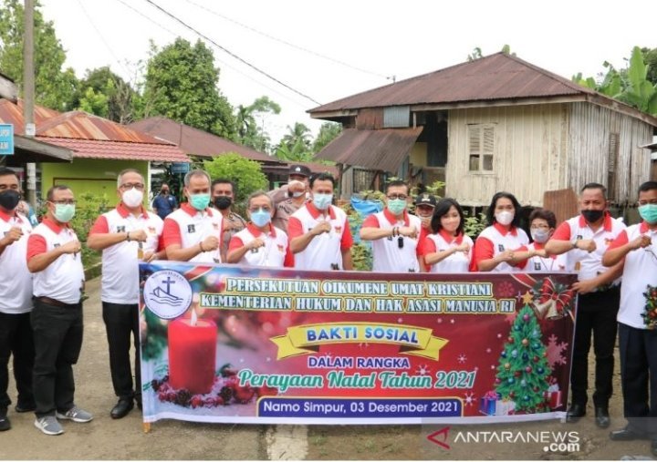 Federasi Umat Kristen Oikumene Kementerian Hukum dan Hak Asasi Manusia Republik Indonesia menyelenggarakan kegiatan bakti sosial yang merupakan rangkaian perayaan Natal 2021 yang dipimpin langsung oleh Menteri Republik Indonesia Yasonna Hamonangan Laoly, Jumat.