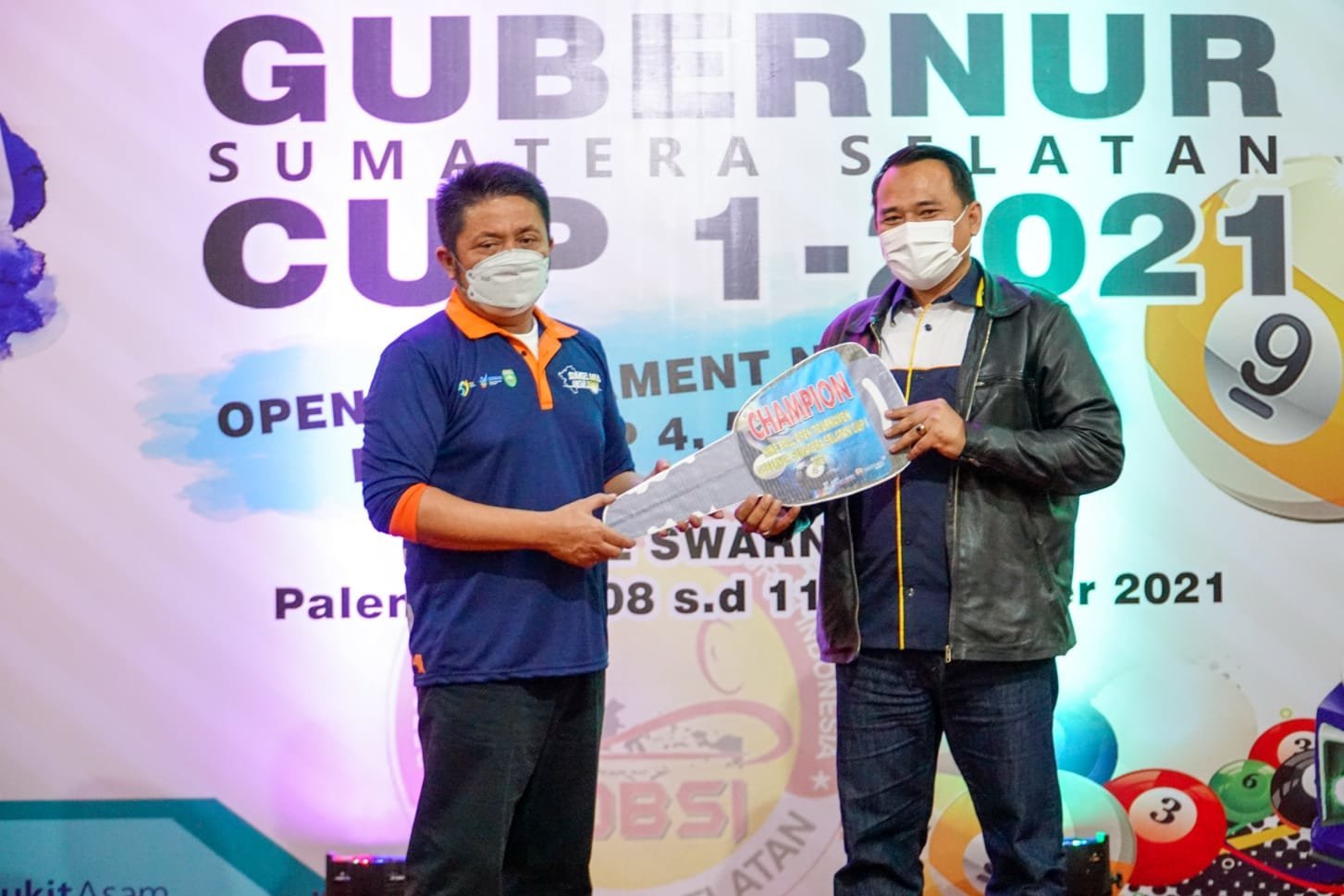 PALEMBANG, KRsumsel.com – Gubernur Provinsi Sumatera Selatan (Sumsel) H. Herman Deru memberikan hadiah bagi pemenang Turnamen Nine Ball Gubernur Sumsel Cup I 2021 sebuah mobil Daihatsu Ayla. Herman Deru mengkui, hal tersebut merupakan bentuk apresiasinya terhadap pelaksanaan turnamen Nine Ball Gubernur Sumsel Cup I yang telah berhasil menyedot peserta dari luar Sumsel.