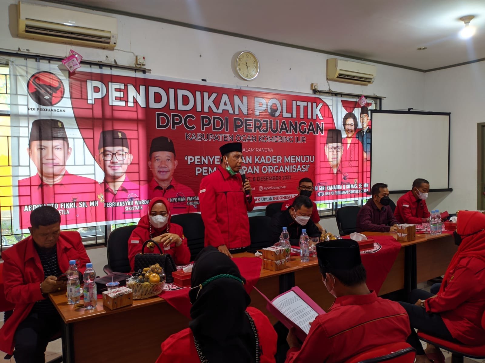 OKI, KRSUMSEL.com – Dewan Pimpinan Cabang PDI Perjuangan mengadakan pendidikan politik kepada kader disetiap PAC nya, di Kantor Cabang di Sukadana Kayuagung OKI Sumsel Rabu (8/12/2021).
