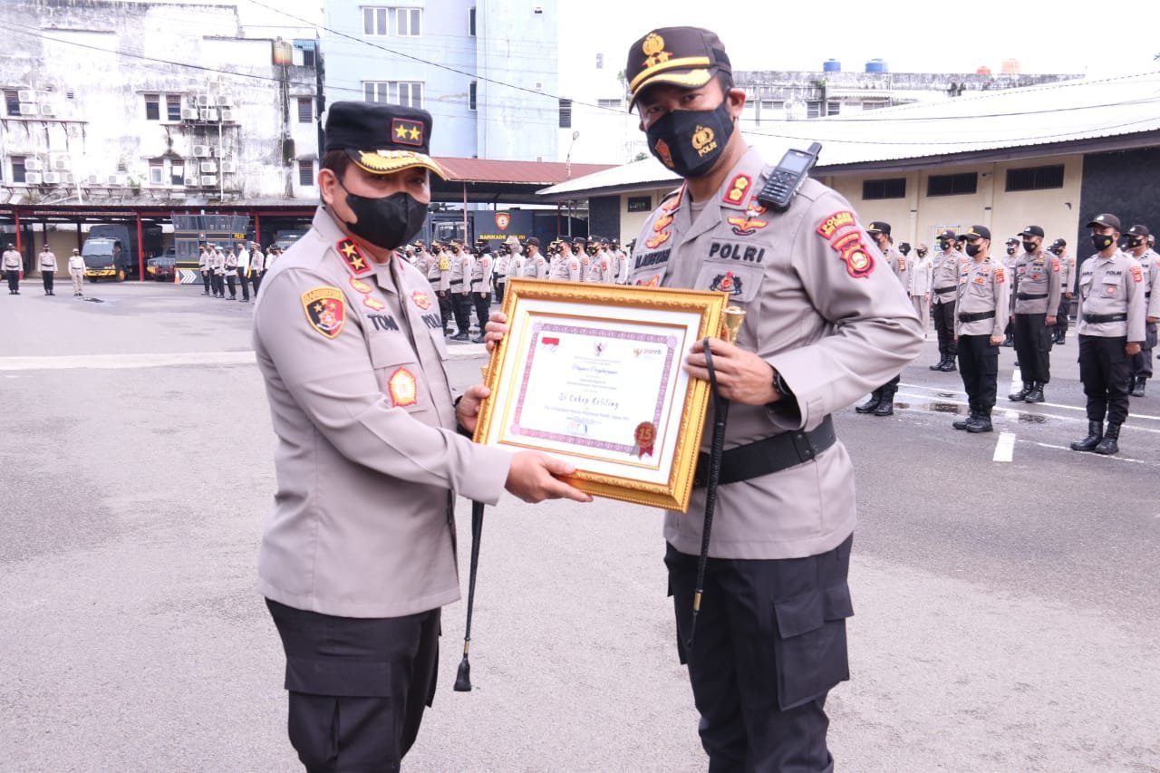 Penghargaan tersebut sendiri diterima langsung kapolres muba Akbp. Alamsyah Pelupessy dari kapolda sumsel Irjen Pol. Toni Harmanto pada saat apel pagi dihalaman polda sumsel, Senin (13/12/21)