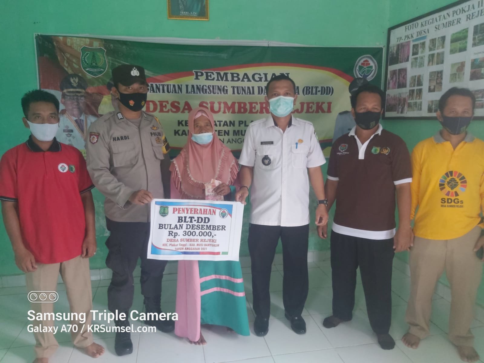 MUBA, KRSUMSEL.com – Pemerintah Desa (Pemdes) Sumber Rejeki, Kecamatan Plakat Tinggi, Kabupaten Musi Banyuasin (Muba) menuntaskan pembagian Bantuan Langsung Tunai Dana Desa (BLT-DD) tahap III Bulan Desember bagi 60 Kepala Keluarga (KK) penerima bantuan.