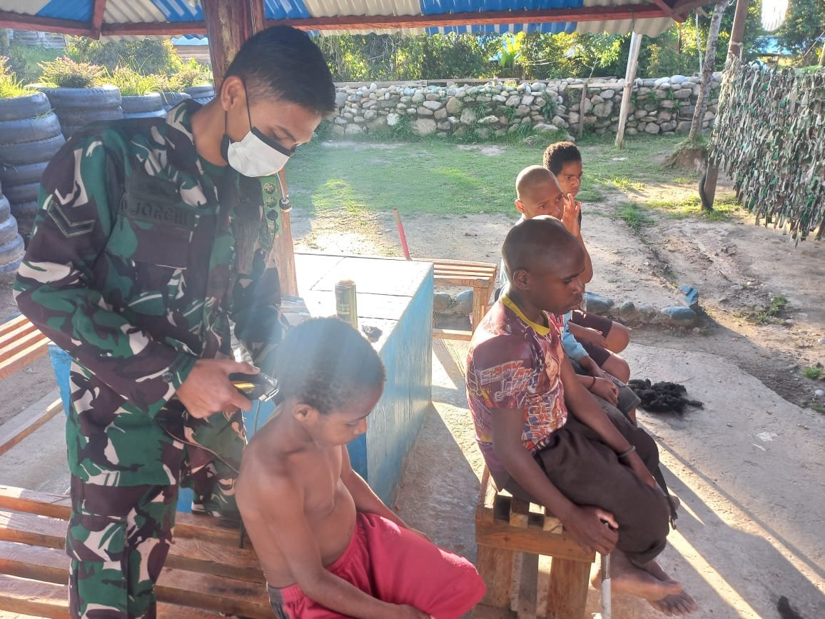 Walesi, KRsumsel.com – Kepedulian Satuan Tugas Pamrahwan Yonif RK 751/VJS bukan hanya dibidang keamanan, namun personel Satgas juga sangat memperhatikan terhadap kerapian dan kesehatan para anak-anak warga yang ada di daerah penugasan.