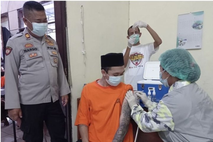 Malang, KRsumsel.com – Puluhan tahanan Kepolisian Resor Kota (Polresta) Malang Kota, Jawa Timur mendapatkan suntikan vaksin COVID-19 dalam upaya menciptakan kekebalan kelompok dari virus corona baru itu.