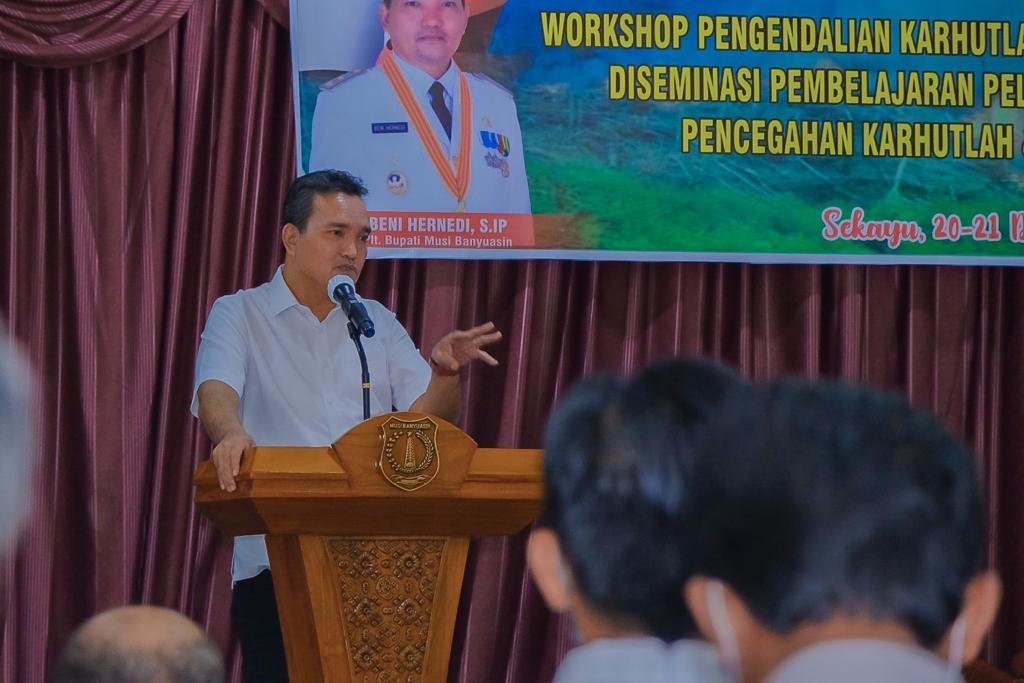 Plt Bupati Muba Beni Hernedi SIP mengatakan workshop pengendalian Karhutlah dan kawasan gambut merupakan tindak lanjut dari kesepakatan Bersama khususnya dalam upaya perlindungan lingkungan hidup pada sektor pencegahan dan penanggulangan kebakaran hutan dan lahan gambut di Kabupaten Muba.