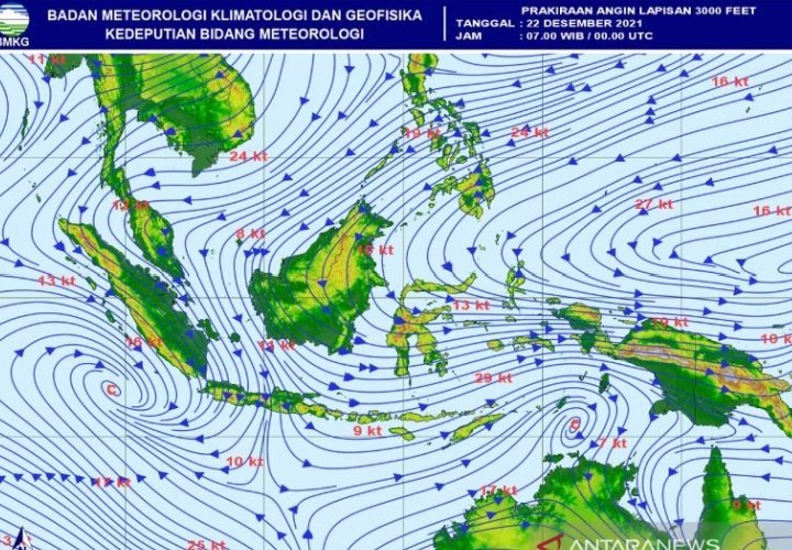 Ia mengatakan berdasarkan pemodelan prediksi cuaca, dalam beberapa hari ke depan terutama pada Sabtu (25/12)-Minggu (26/12), potensi munculnya siklon tropis cukup tinggi.