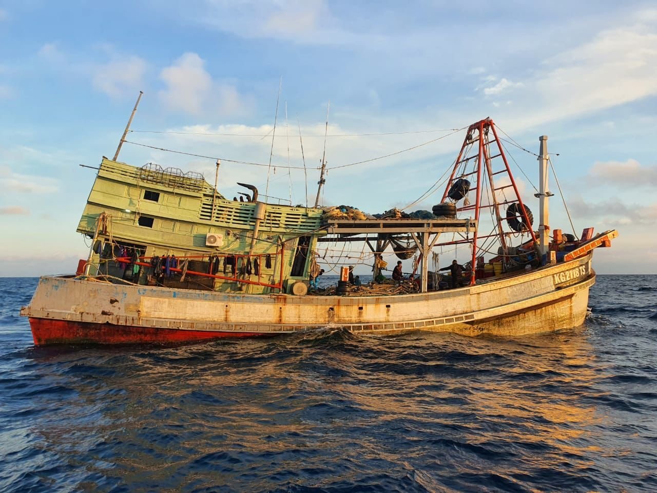 Saat KN Pulau Dana-323 mendekati, 2 KIA tersebut langsung menambah kecepatan untuk menghindar dan keluar dari perairan Indonesia. Menyikapi hal tersebut, Komandan KN Pulau Dana-323 memerintahkan agar menurunkan RHIB dan tim VBSS untuk melaksanakan pengejaran.