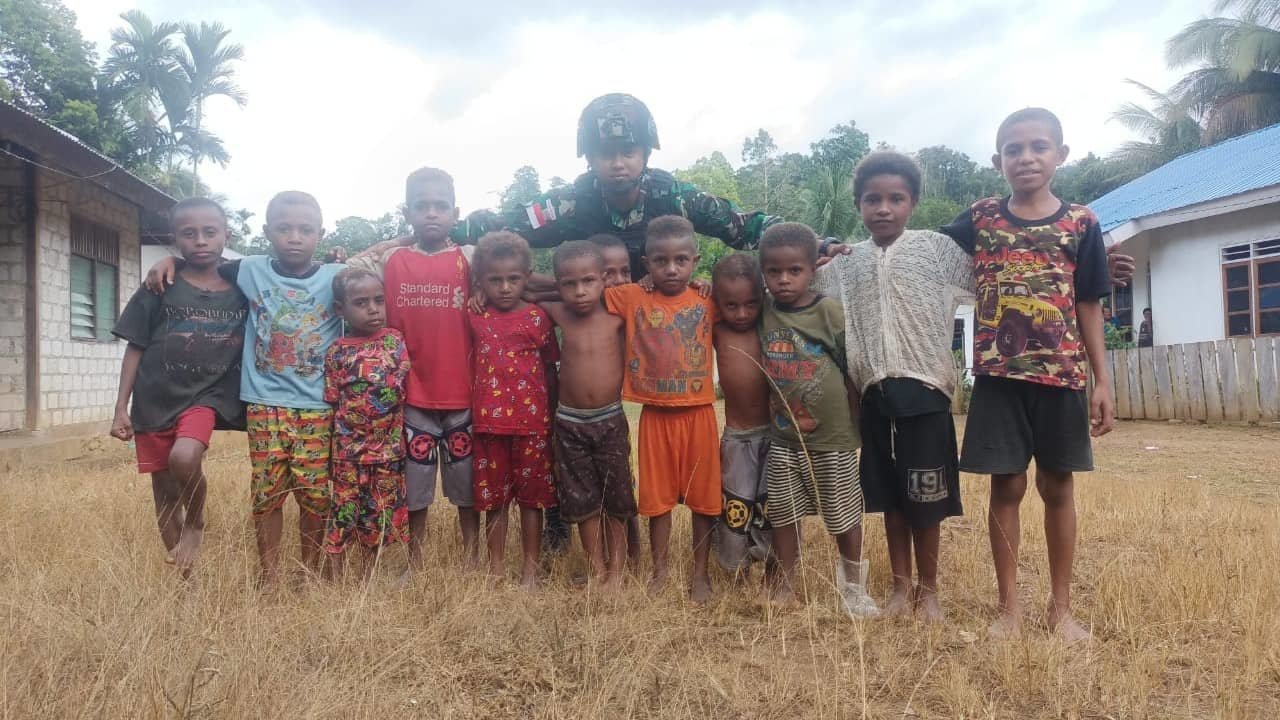 Keerom, KRsumsel.com – Berbagai cara dilakukan dilakukan Satgas Yonif 126/KC untuk mendekatkan diri kepada warga binaannya, salah satunya adalah melalui bermain dan memperkenalkan permainan tradisional Kaki Kuda/Engrang yang sangat digemari pada tahun 80-an kepada anak-anak Kampung Embi, Distrik Web, Kabupaten Keerom, Papua.