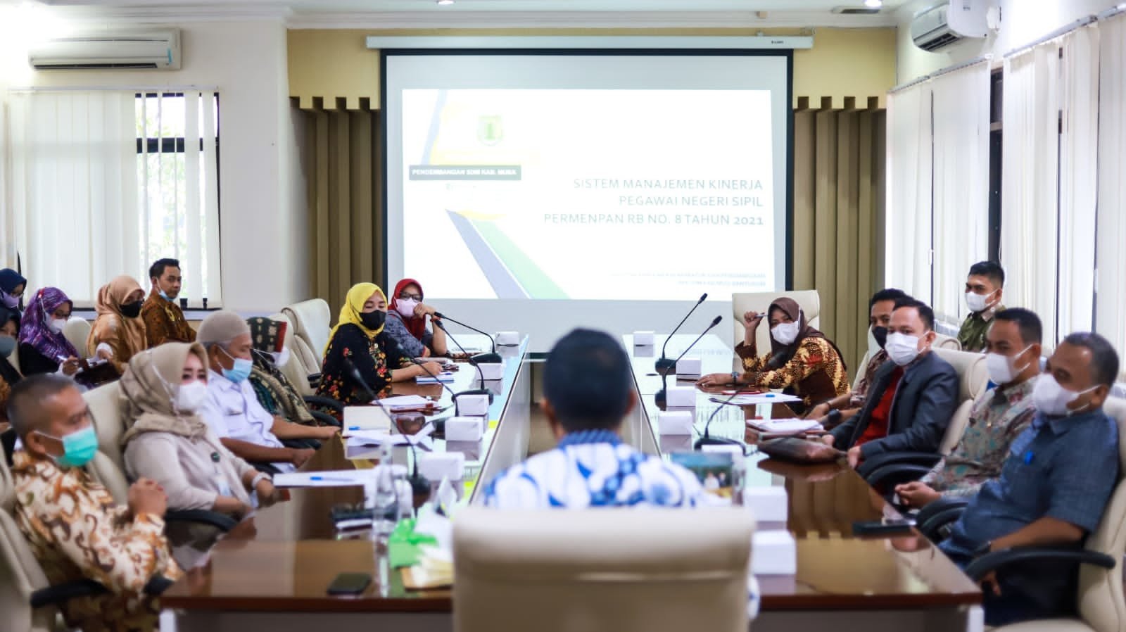 Pemkab Muba, Pemerintah Kabupaten Musi Banyuasin menggelar Sosialisasi Penyusunan Sasaran Kinerja dan Penilaian Kinerja Pegawai Negeri Sipil Tahun 2021 di Ruang Rapat Randik, Kamis (06/01/2022).