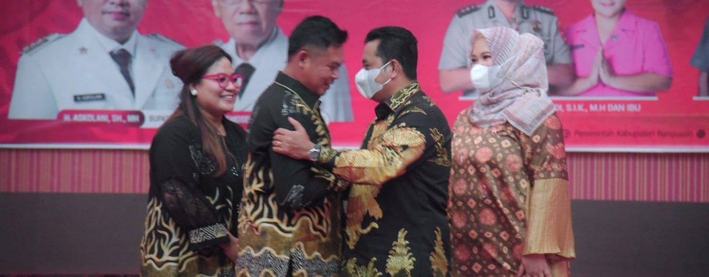 BANYUASIN.KRSumsel com – Bertempat di Graha Sedulang Setudung (GSS), Bupati Banyuasin H. Askolani SH MH bersama sang istri Dr. Sri Fitriyanti Askolani didampingi Wakil Bupati Banyuasin H. Slamet Somosentono SH bersama istri Hj. Neni Tri Haryani Slamet menghadiri acara ramah tamah pisah sambut Kapolres Banyuasin, Senin Malam (10/1/2022).
