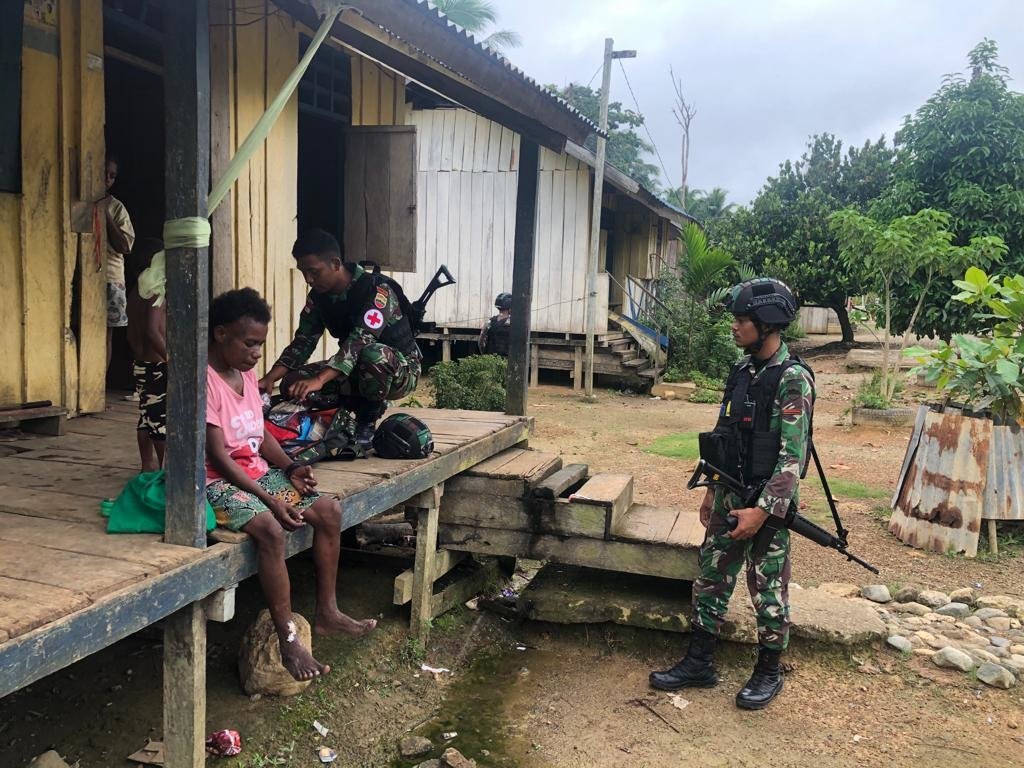 Keerom, KRsumsel.com – Satgas Pamtas Yonif 126/KC Pos Yabanda melaksanakan pengobatan door to door kepada masyarakat di Kampung Yabanda, Distrik Yaffi, Kabupaten Keerom.