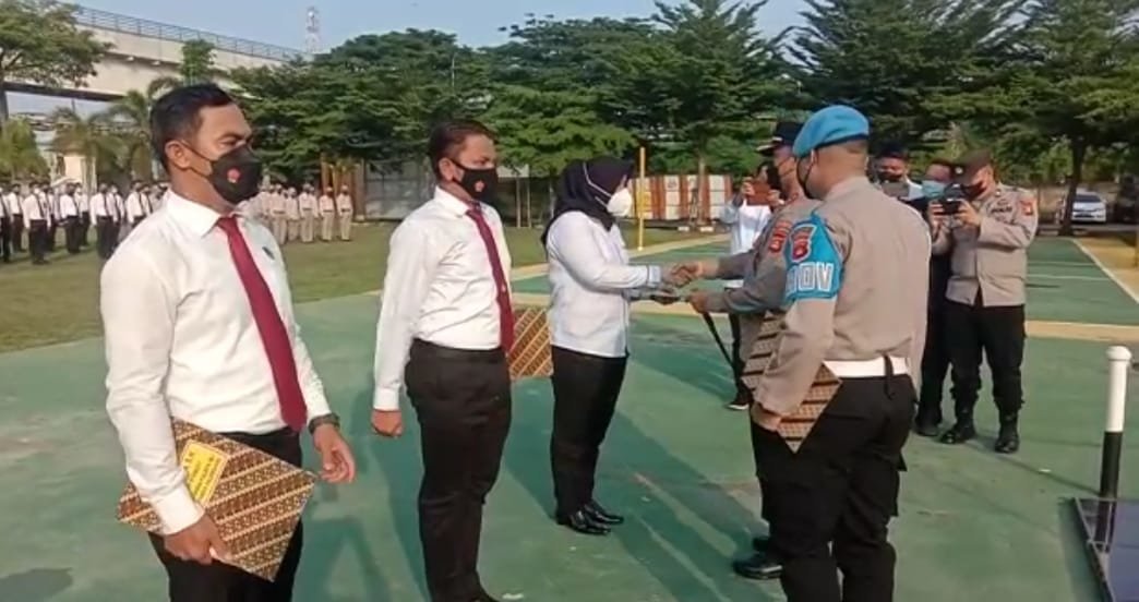 PALEMBANG,KRSumsel.com.- Kapolrestabes Palembang Kombes Pol Mokhamad Ngajib memberikan penghargaan kepada Satres Narkoba Polrestabes Palembang yang berhasil mengungkap kasus peredaran Narkotika dalam Apel pagi di halaman Mapolrestabes Palembang, Senin (17/1/2022) .