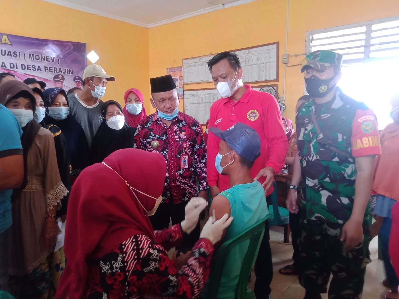 Kemudian vaksinasi di Desa Perambahan, Kelurahan Mariana, Kecamatan Banyuasin 1, juga berlangsung kegiatan vaksinasi untuk anak – anak SD dan dewasa, dengan estimasi target sebanyak 700 orang, dengan penanggung jawab dr Isferianto (Kapuskes Mariana).