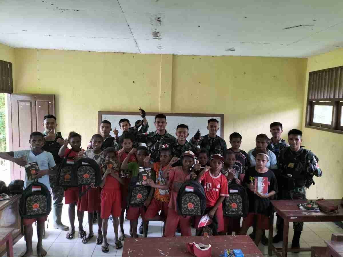 Keerom, KRsumsel.com – Dalam rangka meningkatkan minat belajar anak-anak di wilayah perbatasan, Satgas Pamtas RI-PNG Yonif 126/KC Pos Kaliapao membagikan tas dan buku sekolah secara gratis kepada siswa SD YPPK Pulboa di Kampung Yuwainda, Distrik Waris, Kabupaten Keerom, Papua.