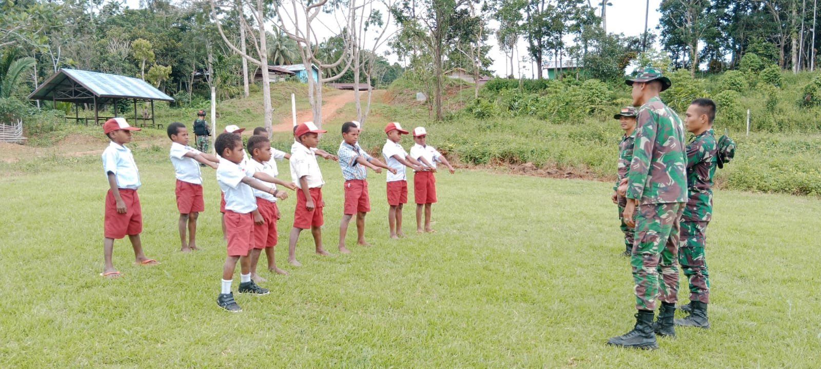 Keerom, KRsumsel.com – Personel Satgas Pamtas RI-PNG Yonif 126/KC melatih beladiri Karate kepada anak-anak sekolah di Perbatasan Papua. Hal tersebut disampaikan Dansatgas Pamtas Yonif 126/Kala Cakti, Letkol Inf Dwi Widodo, S.H.,M.Han dalam rilis tertulisnya di Kabupaten Keerom, Papua, Kamis (03/02/2022).