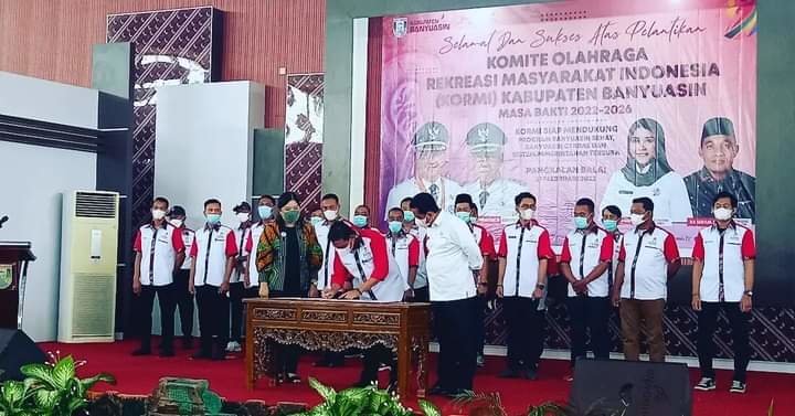 BANYUASIN.KRSumsel.com – Pengurus Komite Olahraga Rekreasi Masyarakat Indonesia (KORMI) Kabupaten Banyuasin Periode 2022-2026 dilantik ketua KORMI Provinsi Sumatera Selatan, Hj. Samantha Tivani, B.Bus, MIB, Herman Deru, Senin, (21/02/2022) di Geraha Sedulang Setudung kabupaten Banyuasin.