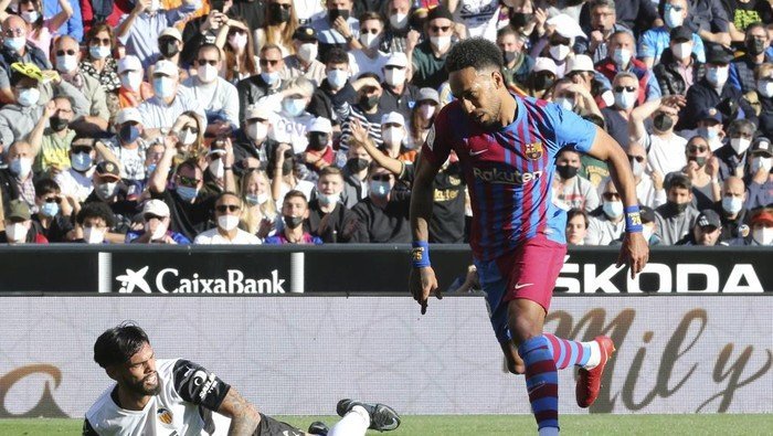 Aubameyang jadi starter saat Barcelona melawat ke Mestalla Stadium, Minggu (20/2/2022) malam WIB. Ini adalah kali pertama dia bermain sejak menit awal bareng klub barunya di LaLiga.
