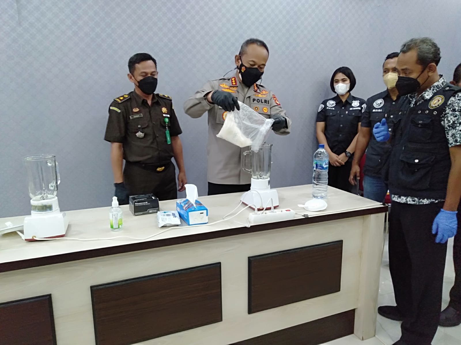 PALEMBANG,KRSumsel.com – Satuan Reserse (Satres) Narkoba Kepolisian Resor Kota Besar (Polrestabes) Palembang blender barang bukti sabu sebanyak 1,8 Kilogram (Kg). Pemusnahan sendiri dilakukan bersama Jaksa dan Tim Labfor di Aula Satres Narkoba Polrestabes Palembang,Jumat (4/3/2022).