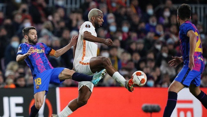 Barcelona vs Galatasaray berlangsung di Camp Nou, Jumat (11/3/2022) dini hari WIB. Duel kedua tim berjalan alot nyaris setengah jam tanpa ada tembakan.