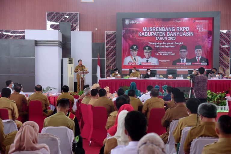 BANYUASIN.KRSumsel.com -Pemerintah Kabupaten Banyuasin melaksanakan agenda Musyawarah Perencanaan Pembangunan (Musrenbang) dalam rangka penyusunan Rencana Kerja Pemerintah Daerah (RKPD) Kabupaten Banyuasin Tahun 2023 yang diselenggarakan di Graha Sedulang Setudung, Rabu (15/03/2022)