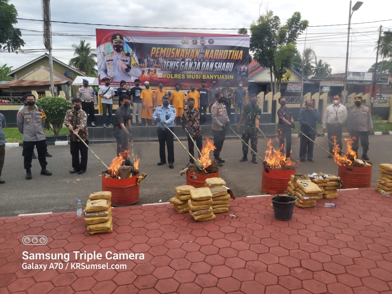 “Hari ini barang bukti narkoba yang kita musnahkan sebanyak 100 kilogram ganja dan 1,7 kilogram sabu- sabu yang merupakan hasil tangkapan Satres Narkoba dan Polsek jajaran selama tahun 2022, ” Ujar Kapolres Muba AKBP Alamsyah Pelupessy, S.H, S.I.K, M.SI di halaman Mapolres Muba, Jumat (18/03/2022).
