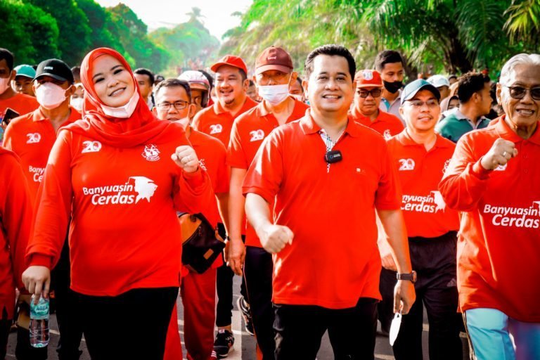 BANYUASIN.KRSumsel.com -Dalam rangka menyemarakkan Hari Ulang Tahun (HUT) Kabupaten Banyuasin yang ke-20, Pemerintah Kabupaten Banyuasin menggelar lomba jalan santai bertabur doorprize yang diikuti oleh ribuan masyarakat Kabupaten Banyuasin Jumat (25/3/2022).