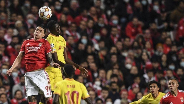 Benfica vs Liverpool berlangsung di Estadio da Luz, Rabu (6/4/2022) dini hari WIB. Liverpool sudah unggul 2-0 di babak pertama lewat Ibrahima Konate dan Sadio Mane.