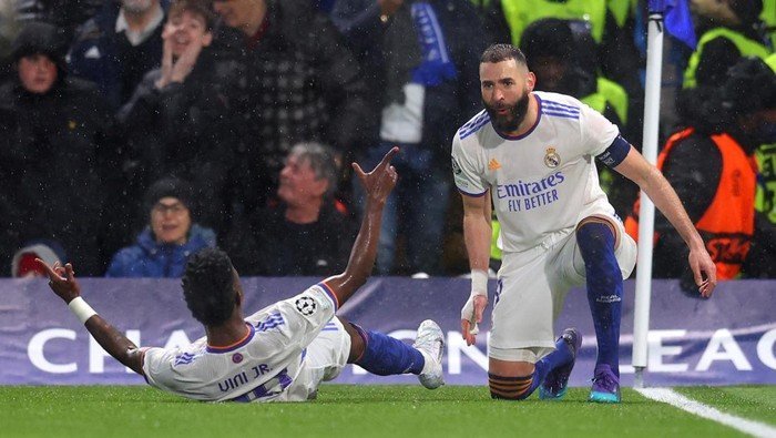 Madrid bertandang ke markas Chelsea di Stamford Bridge dalam leg pertama perempatfinal Liga Champions, Kamis (7/4/2022) dini hari WIB. Los Blancos menang 3-1 berkat hat-trick Benzema.