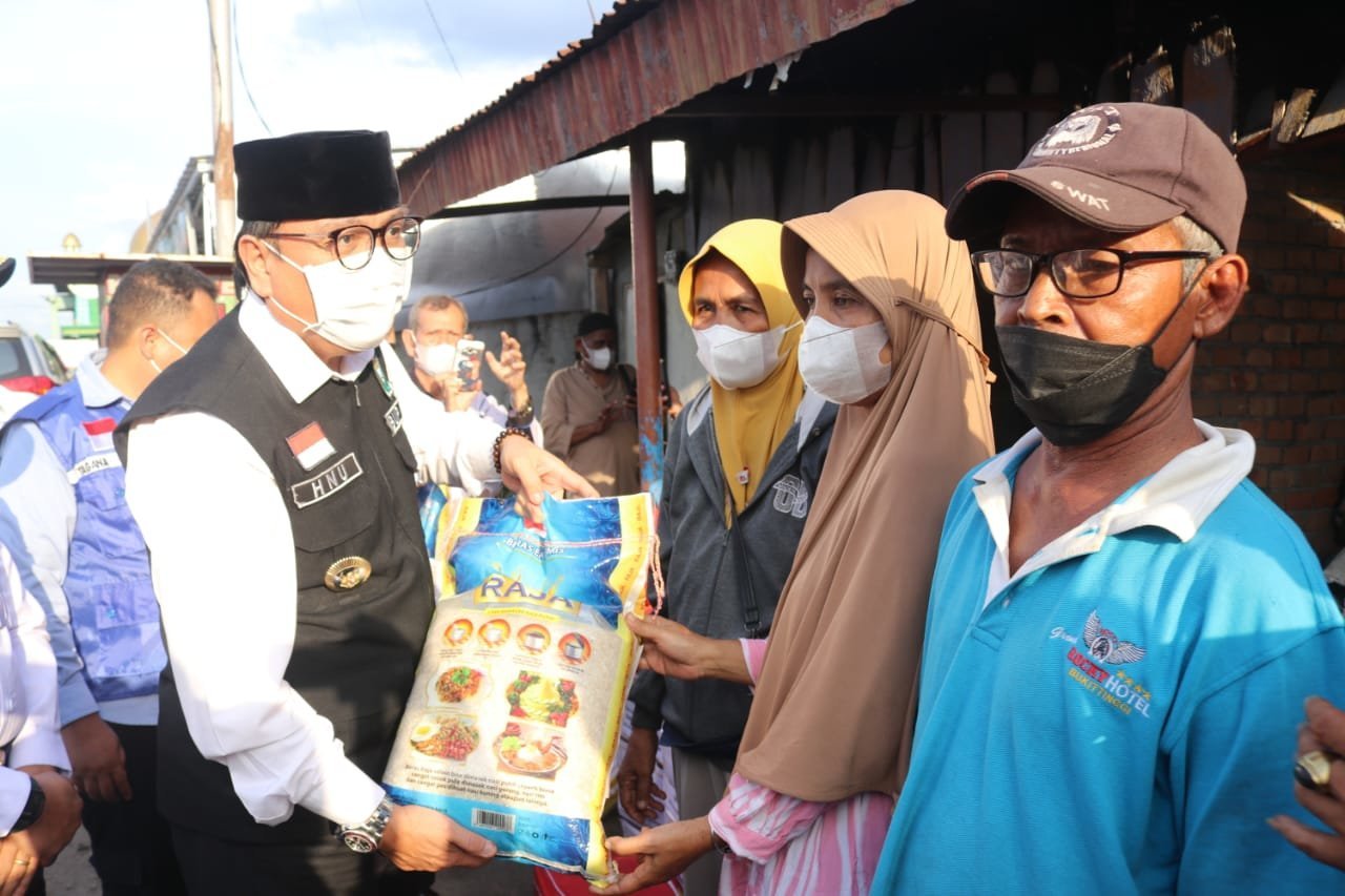 Pj Bupati bersama rombongan meninjau langsung lokasi musibah kebakaran yang telah menghanguskan tiga rumah serta tiga tempat usaha dan satu bedeng empat pintu. Dalam tinjauannya, Pj Bupati menyerahkan bantuan berupa sembako, uang santunan dan keperluan rumah tangga kepada para korban.