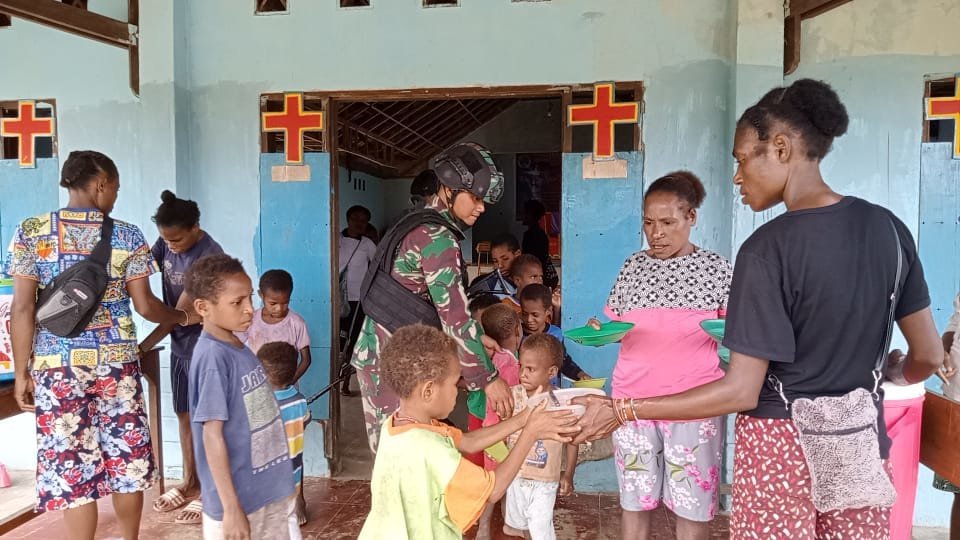 Keerom, KRsumsel.com – Satgas Yonif 126/KC Pos Yabanda turut berpartisipasi dalam memeriahkan acara Camping Perayaan Paskah tahun 2022 dengan membagikan sembako secara cuma-cuma kepada jemaat di Kampung Yabanda, Distrik Yaffi, Kabupaten Keerom.