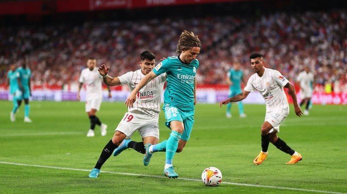 Sevilla vs Real Madrid berlangsung di Stadion Ramon Sanchez Pizjuan, Senin (18/4/2022) dini hari WIB. Los Nervionenses mampu memimpin 2-0 lebih dulu di babak pertama lewat Ivan Rakitic dan Erik Lamela.