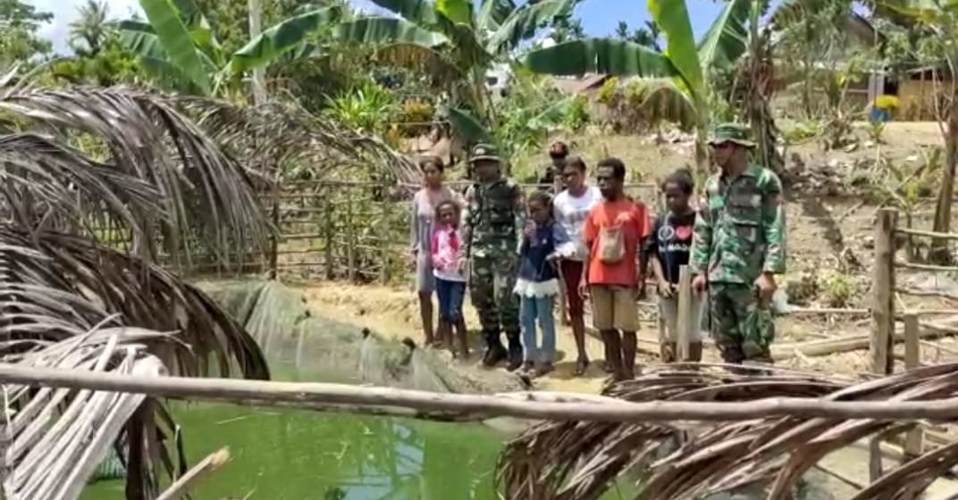 Keerom, KRsumsel.com – Dalam menjaga ketahanan pangan di perbatasan Papua, Prajurit Satgas Pamtas RI-PNG Yonif 126/KC Pos Somografi memberikan penyuluhan tentang cara budidaya ikan lele kepada masyarakat Kampung Somografi, Distrik Web, Kabupaten Keerom.