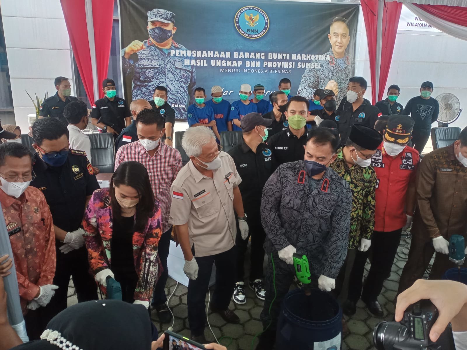 Pemusnahan ini dilakukan di area parkir gedung BNNP Sumsel, Jalan OPI Raya, Kecamatan Jakabaring, Palembang, Kamis (21/4/2022) sekitar pukul 11.00.