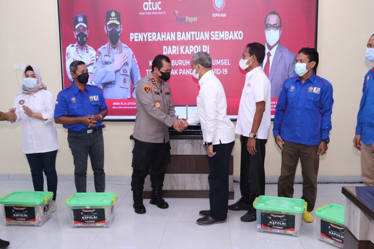 PALEMBANG, KRsumsel.com – Kapolri Jenderal Listyo Sigit Prabowo memberikan bantuan kepada buruh di Provinsi Sumatera Selatan (Sumsel) melalui Kepolisian Daerah (Polda) Sumsel.