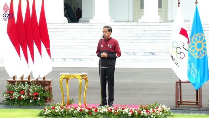 Pelaksanaan pelepasan dilakukan Presiden di Istana, pada Senin (9/5/2022). Hadir Menpora Zainudin Amali, Ketua Umum Komite Olimpiade Indonesia (KOI) Raja Sapta Oktohari, Chef de Mission kontingen Indonesia untuk SEA Games Ferry Kono, serta kontingen Indonesia yang akan berangkat ke Vietnam.