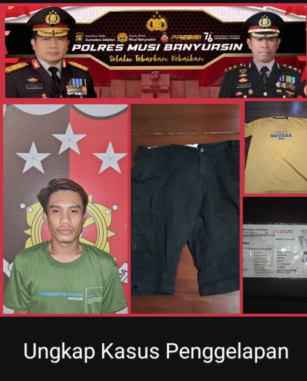 MUBA, KRSUMSEL.com – Erik Fahriyono (20) warga Dusun I, Desa Bukit Jaya, Kecamatan Sungai Lilin, Kabupaten Musi Banyuasin (Muba) berhasil diamankan petugas Unit Reskrim Polsek Sungai Lilin atas ulahnya melakukan penggelapan Sepeda Motor. Minggu, (08/05/2022).