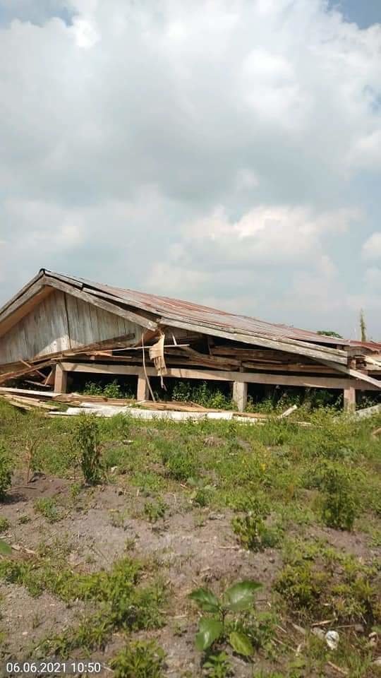 OKI, KRSUMSEL.com – Meskipun telah ambruk setahun yang lalu karena diterjang angin puting beliung, Sekolah Dasar Negeri 2 Rantau Lurus Kecamatan Tulung Selapan Kabupaten Ogan Komering Ilir (OKI) Propinsi Sumatera Selatan, hingga kini belum ada tanda akan dibangun oleh pemerintah setempat.