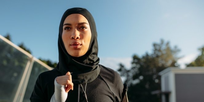 Gerakan kedua yaitu loncat atau jumping jack dan atur napas. Tahan perut dan angkat tangan ke atas.