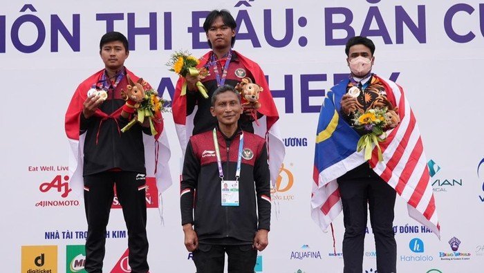 Hanoi, krsumsel.com – Atlet panahan Arif Dwi Pangestu mempersembahkan dua medali emasnya di SEA Games 2021 untuk mendiang ibu. Ia sukses bikin wanita yang melahirkannya bangga.