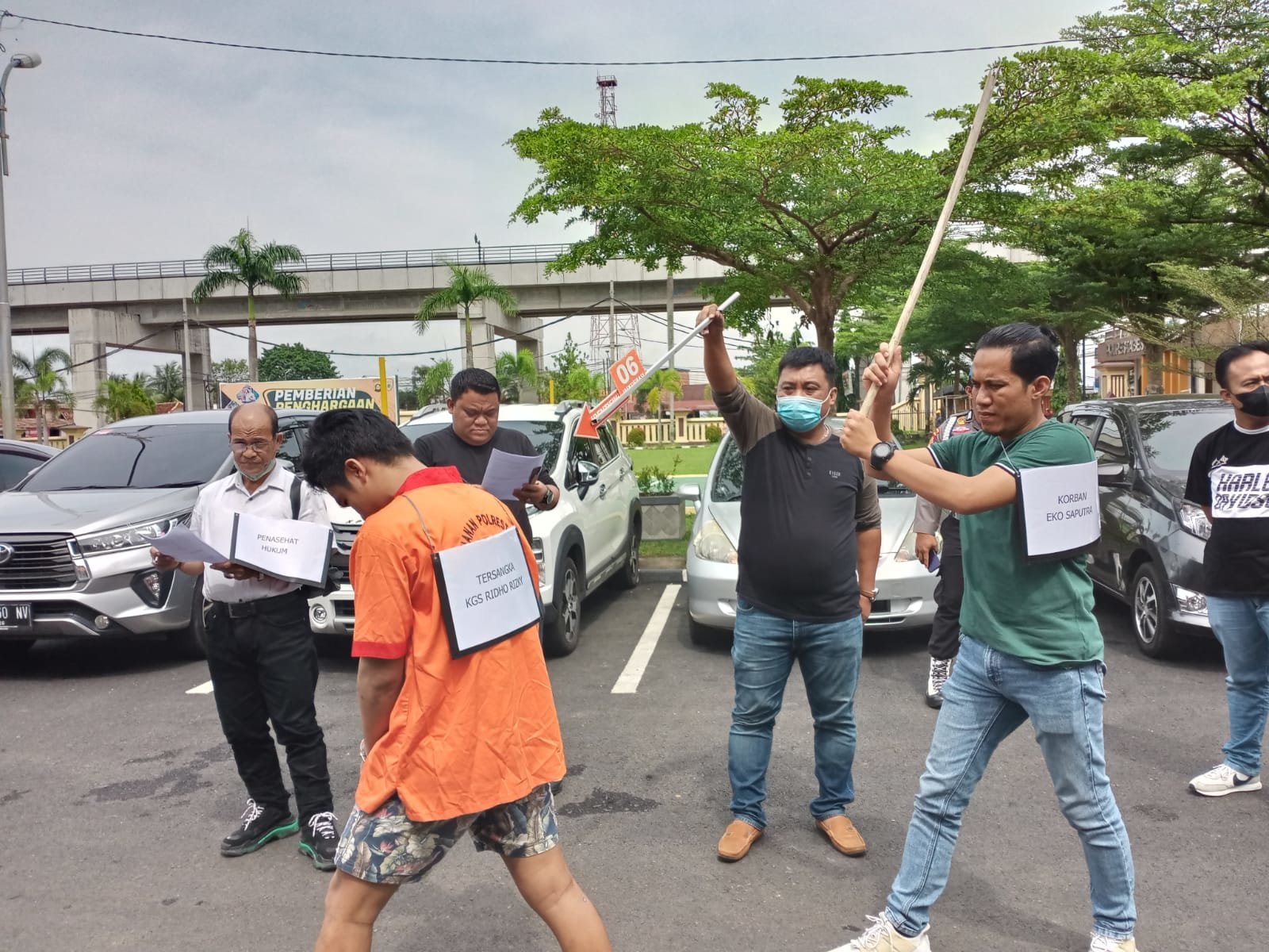 Hal ini terlihat jelas dalam rekontruksi yang digelar anggota Pidana Umum (Pidum) Satreskrim Polrestabes Palembang di halaman Mapolrestabes Palembang, Rabu (25/5) yang melibatkan langsung pelaku.
