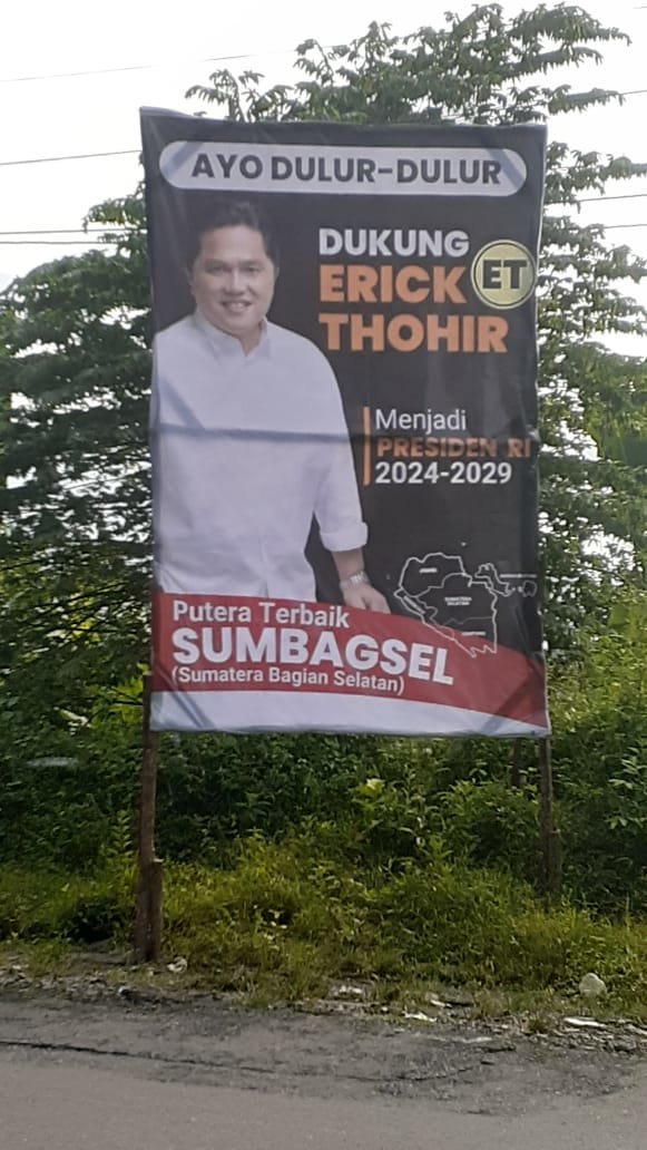 Lahat, KRsumsel.com – Spanduk bergambar dukungan terhadap Erick Thohir maju sebagai calon Presiden Republik Indonesia tahun 2024, bertebaran ditiap Sudut maupun persimpangan baik di Kota Lahat maupun di Kecamatan -Kecamatan.