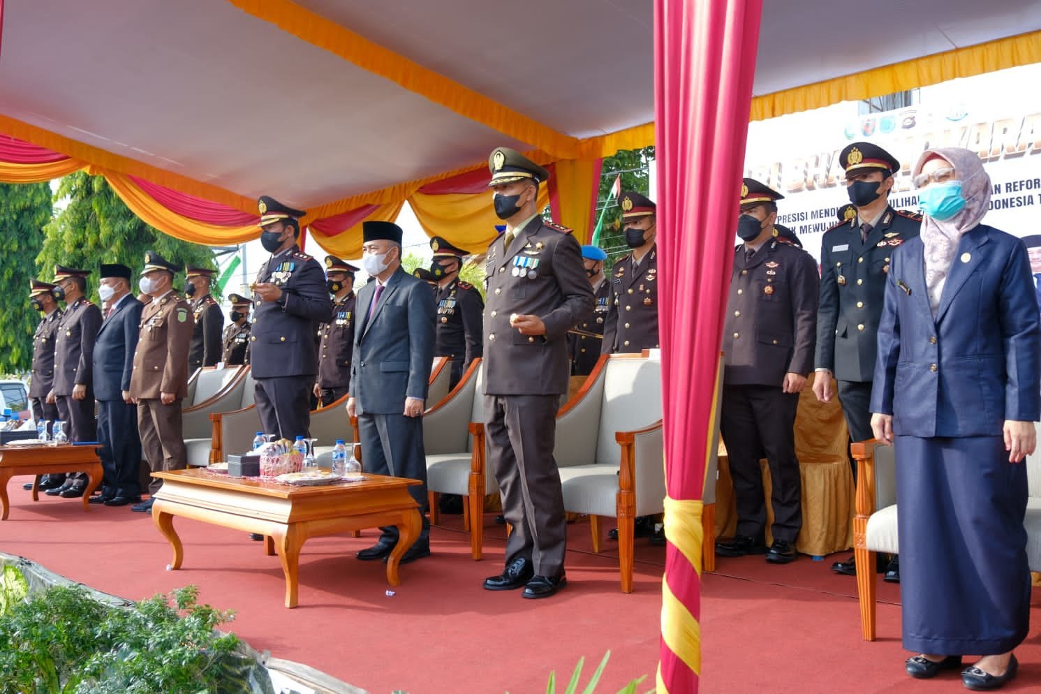 Pj Bupati Muba H Apriyadi menghadiri langsung pelaksanaan Upacara yang dilaksanakan secara virtual. Di mana bertindak selaku inspektur upacara Presiden RI, Joko Widodo yang dipusatkan di Akademi Kepolisian, Semarang Jawa Tengah.