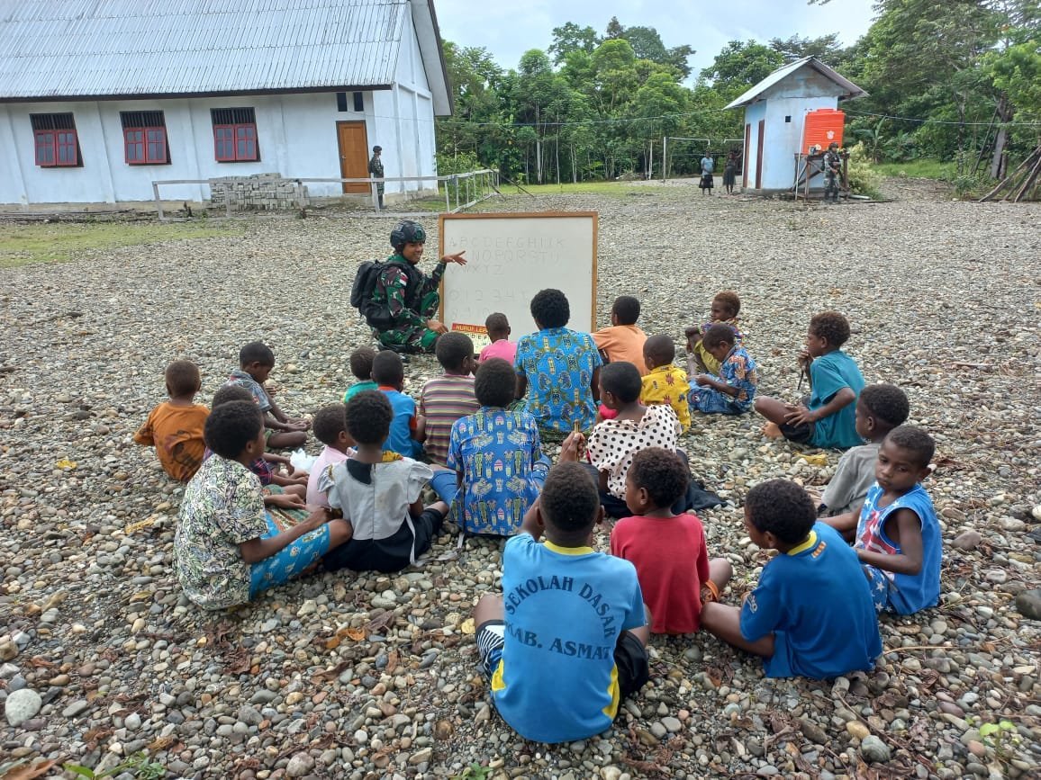 Di tempat yang sama, Serda Venda selaku Bintara Pos Kekey yang terjun langsung mengajarkan pengenalan huruf Alfabet dan angka-angka menyampaikan hal tersebut merupakan tugas yang mulia dapat berbagi pengetahuan dengan anak-anak. “Kita juga punya cara tersendiri agar anak-anak ingat dengan yang kita ajarkan, terkadang kita berikan biskuit ataupun permen,” ungkapnya.