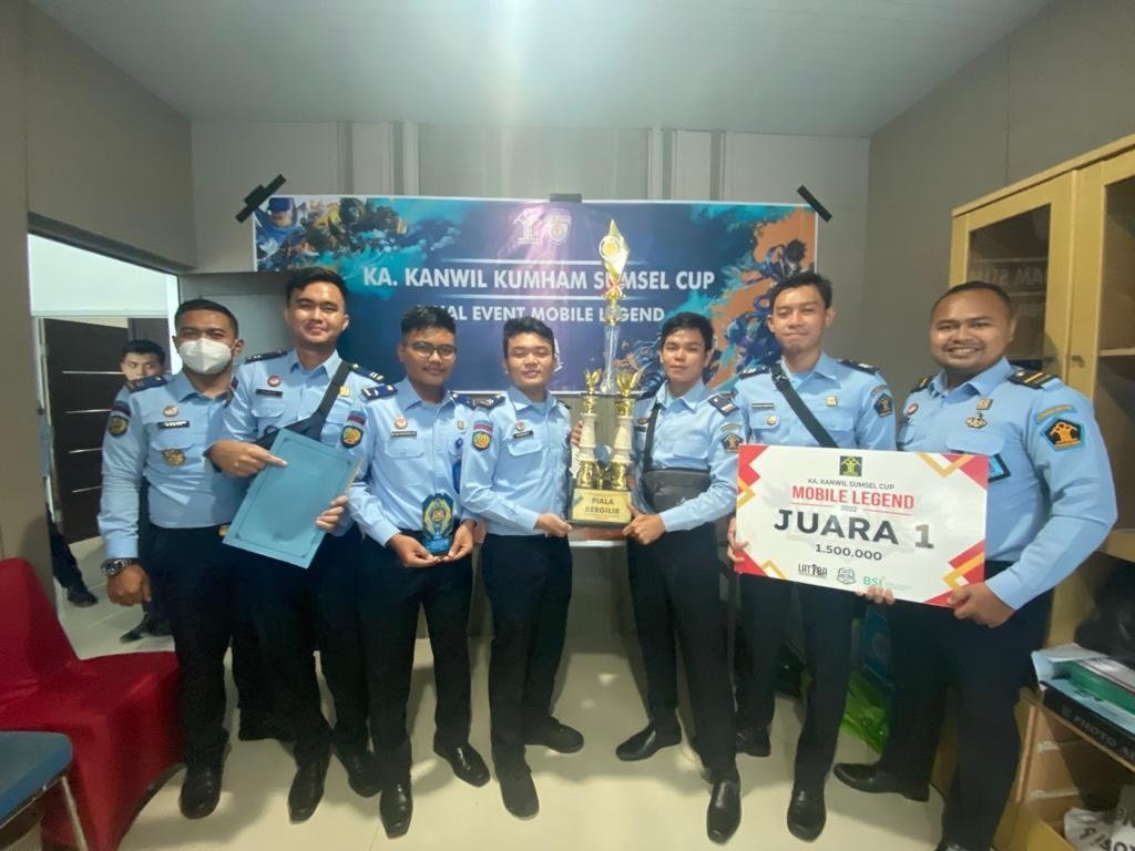BANYUASIN,KRSumsel.com – Tim E – Sport Lembaga Pemasyarakatan (Lapas) Kelas IIA Banyuasin Kemenkumham Sumsel berhasil meraih juara 1 (satu) pada Mobile Legend Tournament Kakanwil Cup, yang diselenggarakan oleh Kanwil Kemenkumham Sumatera Selatan, Selasa (19/07/2022).