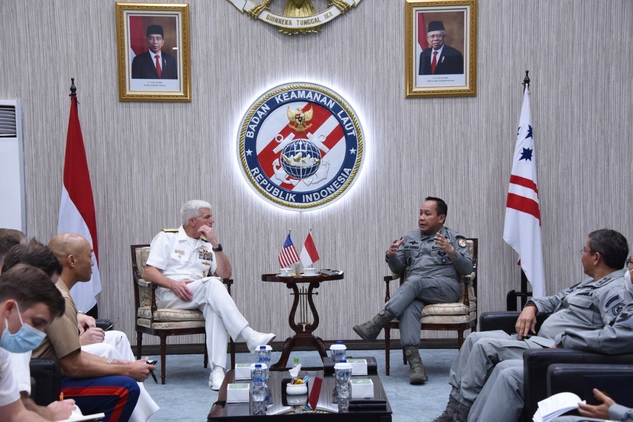 Vice Admiral Thomas, dalam kesempatan ini membahas kerja sama maritim yang dapat dilakukan oleh kedua instansi. Beberapa program kerja yang dibahas seperti teknologi maritim yang sesuai dengan konsep Maritime Domain Awareness (MDA), peluang pertukaran informasi antara Bakamla RI dengan US Navy serta pembahasan situasi keamanan di kawasan.